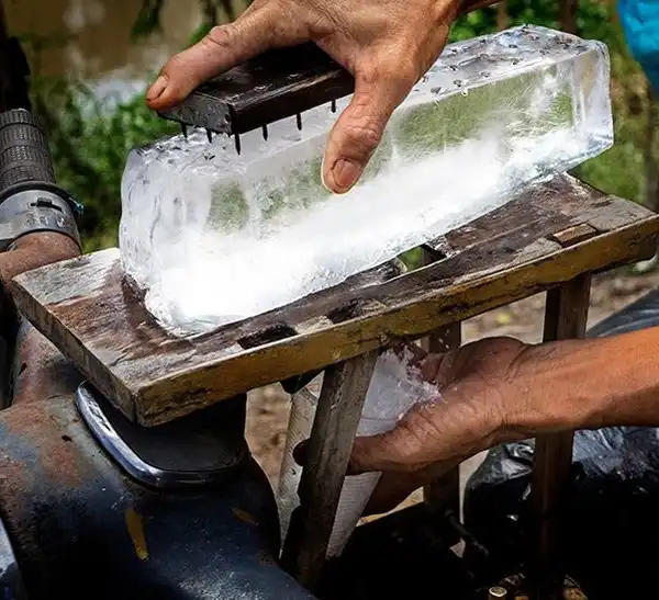 Cái xe đá bào cũng không có gì đặc biết hết, một cái bàn bào đá bằng gỗ, một miếng gỗ nhỏ có gắn miếng thép đục lỗ để đè cục nước đá lúc bào không bị trượt. Tiếng sột soạt khi bào đá nghe rất vui tai, bây giờ mọi thứ đồ ăn, thức uống đa dạng phong phú hơn những xe đá bào năm nào cũng không còn nữa.